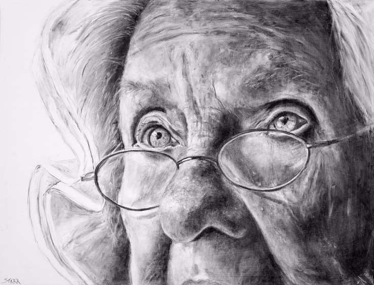“Looking Forward” 36″ x 24″ Charcoal on Gessoed Board