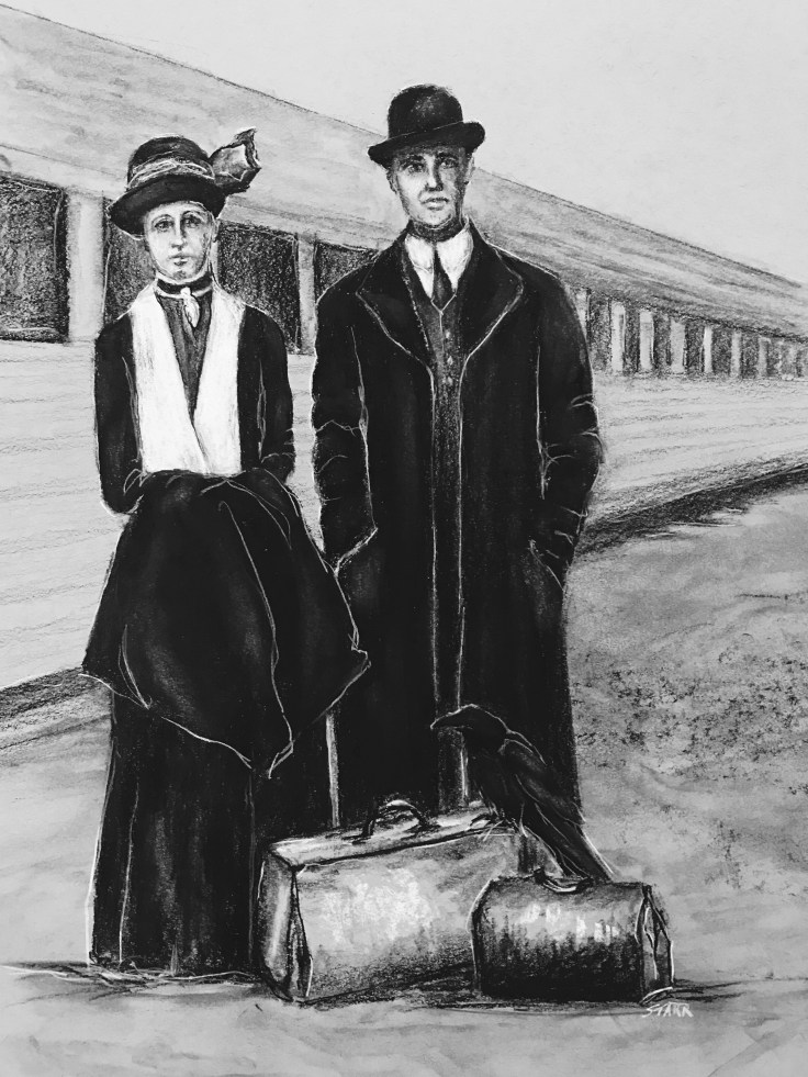 “The Last Stop” This charcoal on paper piece, 14″x11″.